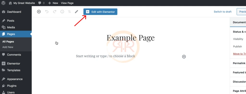 Untuk membuka editor elementor, Anda dapat mengunjungi menu Posts atau Pages , lalu klik halaman yang ingin Anda edit. Di dalam editor, Anda akan melihat tombol “Edit with Elementor” yang akan membawa Anda ke editor Elementor.