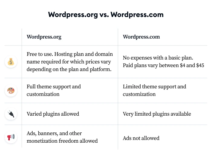 WordPress.org adalah perangkat lunak sistem yang memungkinkan Anda membangun situs web. Ini gratis untuk digunakan, tetapi Anda harus memiliki domain dan penyedia hosting sendiri. Anda memiliki kendali penuh atas tampilan dan fungsi situs web Anda. WordPress.org memungkinkan Anda untuk menyesuaikan situs Anda sebanyak yang Anda inginkan, menempatkan iklan, dan plugin di dalamnya, sehingga sesuai dengan tujuan yang Anda inginkan.